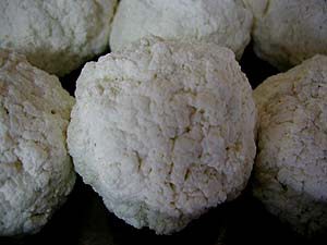さらに話はぶっとんで、出来上がったとおぼしきチーズ。これはエマダツィなどに使われる料理用のものです。何だか肉まんというかカリフラワーというか、不思議な感じです。