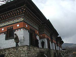 ちなみにブータン建築の「屋根」は今でこそ写真のように波形トタンが普及していますが、かつては(今でも結構残ってるけれど)板屋根でした。一部地域ではスレートの屋根だったところもあったようです(ワンデュ付近)。