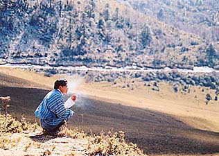 聞けばこのガイドのカルマさん、かつて日本にも行ったことがあり、独学ながら一所懸命日本語を勉強中だとか。さらには「地球の歩き方ブータン編」の作成にも一役買ったという優秀なガイドさんだったんです(「地球の歩き方」にも名前が載っています)。こりゃ何ともツイてるなぁ。