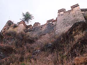 さて、タクツァン僧院から戻り、再び車に乗ってドゥゲ・ゾンへと向かいます。もともとチベット軍の侵攻を防ぐために構築されたこのゾンは、1951年に火事で焼失してしまったのだとか。普通ならタクツァン僧院のようにすぐさま再建されるところですが、この頃にはチベットそのものが中国に「編入」(この辺のいきさつについてはいろいろな意見があるところですが、本題からは外れるので全部割愛)されつつあったこともあり、結局再建されないまま今に至っているようです。