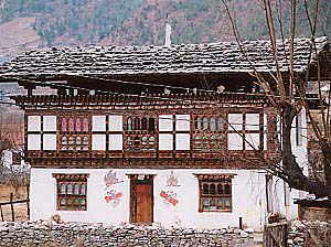 こちらはパロ・ゾンの屋根付き橋のたもとにあるお宅。さりげなく建っているから、意識しないと気がつかないかもしれません。