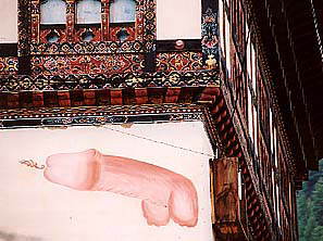 しかし、最近は「やっぱり家の入り口にアレというのはどうも照れくさい」というような意識が広がりだしてしまったらしく(いかんなぁ、いかん!)、新たにこのペイントを施す家はめっきり減ってきているということです。日本でも江戸期までの裸体に関する意識が明治以後一気に変貌してしまいましたが、ここブータンでも同じような変化が起きつつあるということでしょうか。だとすれば残念なことです。