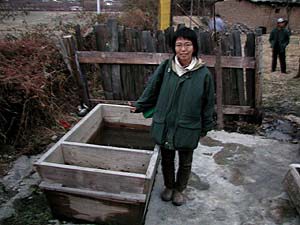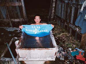 てなこって夕暮れもおしせまりつつある頃に民家到着。おっと、入口にさっそくドツォ発見。うーん確かに露天風呂ですな。大小二槽に分かれているのはなぜだろうと思ったりしますが、この後すぐわかっちゃいますのでここでは黙っていようっと。