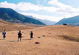 この村の中心にある「ガンテ・ゴンパ」は、このあたりでは珍しいニンマ派仏教のお寺なのだそうですが、今回は時間の関係でパス。工事中らしいし、オグロヅルの保護区はここから更に5kmほど下ったところにあるのでそっちを優先というわけですね。