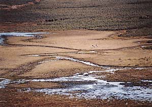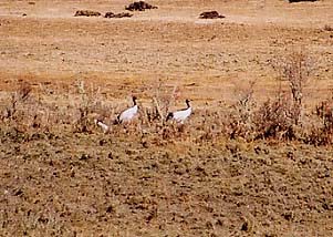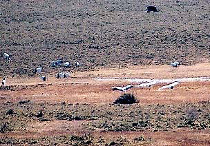 ま、遠かろうが何だろうが見られたのは確かだし、こんなピンぼけでも「尾が黒い=オグロヅル」のネーミングの由来くらいはちゃんとわかるし、うちらとしてはこれで納得というところです。ちなみにここポブジカでは、ツルが飛来する初冬の頃に「ツル祭り」が行われるそうで、ツルの装束を着た人々が舞い踊るのだとか。それも是非是非見てみたいものです。ツル装束の人間なら逃げられることもないし(笑)。