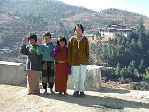 山のはるか上の方からどこからともなく子供たちが駆け下りてきました。しかし、降りてきたからといってわれわれ観光客にすり寄って来るという「下心」があるというわけではなく(他の国では非常にしばしば見られることですが)、ある程度距離をおいてこちらをちらちら見ているだけです。そこでわたくしTakemaは逆に彼らにすり寄って「こんにちは。ところで君たちの写真を撮ってもいいですか?」と聞くと、もじもじしながら、それでいて上の写真のように「整列&笑顔」。うーむ、こんなに気持ちよく写真を撮らせてくれる国はそうそうないでしょうね。