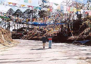 道路沿いに横断幕として左右に広がるカラーダル、そしてその手前には一面の白ダルの林。峠は、日本と同じようにやはり祈りの場所だったんですね。しばらくは、このようなドチュ・ラの一風変わった風景(ブータンではここ以外でもあたりまえの風景なんですが、初心者だったもんで(笑))を楽しんでおりました。