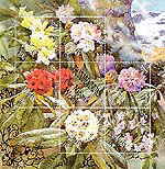 高山に咲く花々のうちのシャクナゲ特集の切手。春の峠道はこのシャクナゲに彩られるのだとか。やはり花を見るなら春じゃなくっちゃね。