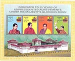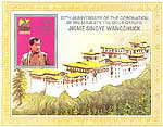もう一枚、ジグメ・シンゲ・ワンチュク国王の切手シート。しかし、この切手を使う時って、王様の写った切手をぺろっと舐めていいんだろうか?まぁ不敬罪にはならないでしょうけれど、ちょいと疑問。建物はタシチョ・ゾンです。
