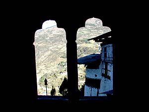 最上階の廊下。窓で切り取られた風景は何だかブータンの原風景を彷彿とさせる。