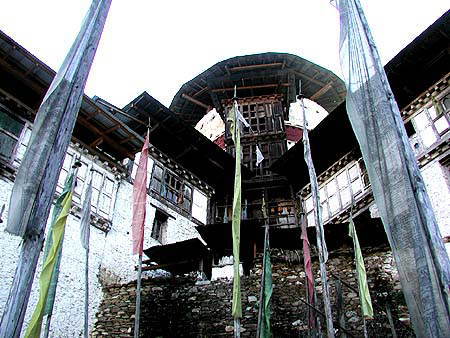 カルマさんについてお寺の中に入っていきます。内部は暗く急です。階段(というか梯子)をいくつか上がっていくと本堂に到着。お坊さんが朝の勤行の真っ最中でした。私たちもお参りさせてもらい、香油をいただき、お線香をお供え。窓際のお坊様の背後から光が入り、その場の雰囲気は何とも神々しいものでした。はぁ、来て良かった。