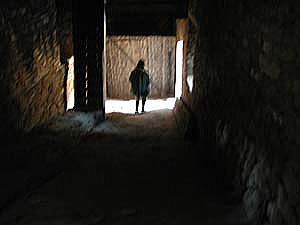 建物の入り口からすぐに真っ暗になる。土で固められたデコボコの暗闇斜面は、俗世と仏世界の結界のようなもの?