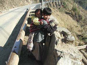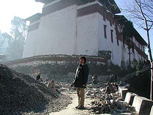 このあとトンサ・ゾンの入口まで来て記念写真‥と思ったら工事中だった。すぐ脇にはまだ小さな女の子が子守の真っ最中。ニコニコとかわいらしい子でしたよ。