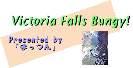 さて、以前ナミビア周辺情報の件でメールをやりとりしたことのある「まっつん」さんが、2002年夏南部アフリカの旅を終えて帰ってこられました。しかし!帰国の旨を記したメールにはなんとビクトリアフォールズのバンジー画像が添付されていたのです!う、うらやましい、うらやましすぎる!しかも2回もジャンプしたとはぁ!