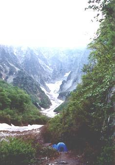 かつてロッククライミングの黄金期にはこのあたりをベースキャンプにした多くのクライマーの姿が見られました。もちろんその分遭難者も多く、沢を渡ったところにある小さな岩場には、「**君を偲ぶ」系のレリーフが多く埋め込まれています(ホントは違法なのかもしれませんが)。最近はここの岩場を目指す人の数もぐっと減り、テントの数も昔に比べたらめっきり少なくなりました。