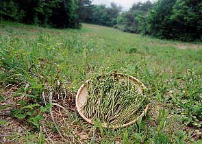 登山口の駐車場まで降りてきて、「さぁって帰るかな」と思い車に乗り込んだのですが、ちょっと走らせたところですぐにストップ。このあたりは沼尻スキー場のゲレンデなのですが、ちょうどこの時期はワラビが出ているようで、ところどころに止まっている車はどうやらワラビ採取中のよう。それならばということで、ひと月前のTakemaオフキャンプと同じように、ワラビ探しに精を出すうちら夫婦でありました。そして結果は‥ご覧の通り(右下写真)。よっしゃ、いいおつまみができたぞぉ。