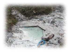 右の写真は源泉の湧出口の上で撮ったもの。湧出口付近は暑くて写真も撮れない。