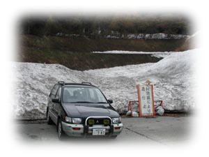 翌朝は6:00過ぎに起床。曇ってはいるが雨の降る気配はない。とりあえず自分も行ったことのない肘折温泉に行って朝風呂を楽しんじゃおうコースに決めた。ここからだと県道57号でダイレクトに行けるはずだ‥ったんだけれど、いざ向かってみたら、肘折温泉に近いあたりは冬期通行止め。そうかぁ、まだ雪が残ってるもんなぁ。幸い国道458に出る道が開いていたのでそちらに逃げる。