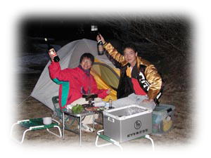 夜の宴会はいつもの通り。最近Takemaのキャンプでなぜか定番になりつつある