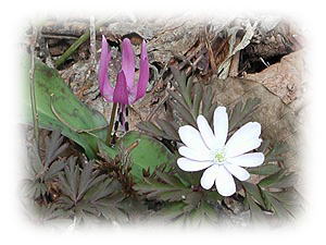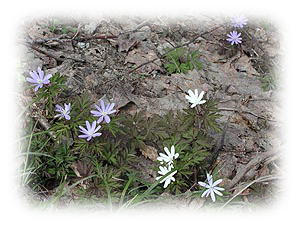 この後あちこちを巡っているときに、このあたりではカタクリの花でさえ決して珍しいものではないもんだということに気付かされたのですが、関東周辺では「カタクリの群生地=少なくとも県指定の保護地」というイメージが自分の中で出来上がっているせいもあって、結構嬉しかったのでありました。それにしても右側の、白だったり薄紫だったりする花の名前、ご存じの方がいらっしゃったらお教え下さいね。