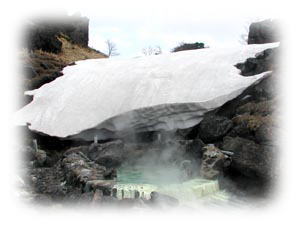 秋田側に少し下ったところにある「秋田須川温泉」はすでに営業を開始しているようなので、そこでお風呂にはいることにする。でもその前にちと遊ばにゃね。詳細は次ページでね。