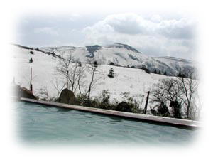 お湯は透明に近いがやや青みがかっている。露天風呂には10名ほどが入っていたが、湯船がとても大きく全然混んでいる気分にはさせられない(ちなみに内湯もほぼ同じ大きさ)。あたりの風景はなかなかに絶景。雪のたっぷり付いた栗駒山方面を眺めつつ足を伸ばしてゆったり入れる。中にはしっかりビールを持ち込む人もいたが、販売機は脱衣場の外なので、今さらおいそれと買いに行くわけにもいかず諦める。