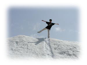 峠の駐車場付近はまだ数mの積雪が残っている。しかも、地元の人には珍しくも何ともない(というか邪魔くさかった)雪ゆえに、ほとんど誰も足を踏み入れた形跡がない。しかも場所によっては適度な急斜面があり、雪遊びにはもってこい。となればTakema夫婦がそのまま何もしないはずがないわけで、まるで「お約束」のように遊びに行くことに。ま、こればっかりは年齢なんて関係なしの楽しみですな。