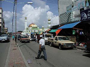 うーんやっぱりマレーシアらしくちゃんとモスクが見えてます。いや、このあたりのフィリピン系の人たちも確かムスリムのはずなので(たぶん)、そういう点では対立もないはずですよね。いやちょっと待て、確か地元民族のカダザンドゥスン族はクリスチャンが多いんだったっけ。いずれにせよ宗教的な対立問題はあまりなさそうなマレーシアならではということか。