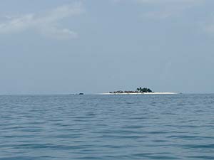 いやぁ、道中は快適そのものです。船と行き違うときの波を除いてはまったく平穏な、まるで湖のような海をたぶん50kmくらいのスピードでひたすら走ります。途中には小さな小さな島もあったりしてそれなりに景色も楽しめるし、いやぁ休暇っていいなぁ(笑)。