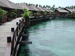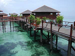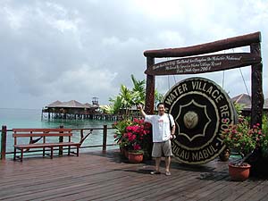 ウェルカムドリンクでのどを潤しながらのチェックインとは久々の体験だぞ(笑)。色々と説明を受けた上でとりあえず水上のマイコテージへ(というか、この「シパダンウォータービレッジ」は何から何まで全て海上に造られています)。いやまぁこれらがえらく立派なもんでぶったまげちゃいました!