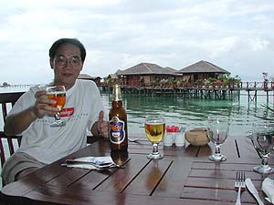 そして当然のごとく「何はともあれビールビール!」と相成ります。もっともここを訪れる絶対大多数のお客がダイビング目当てというわけで、昼間にビールを注文すると必ず聞かれるのがこのことば。