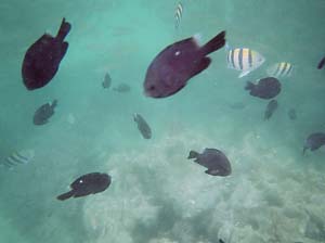 というわけで、マブール島周辺の海をのぞいてみました。太陽は薄日状態で、しかも思ったよりも透明度が高くなかったのは残念ですが、いや、これでも贅沢しすぎだってぇの。でもやっぱり使い捨てカメラには限界があるなぁ。
