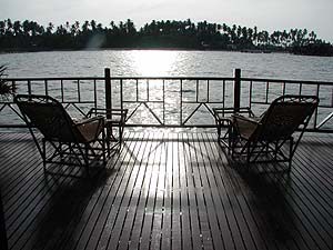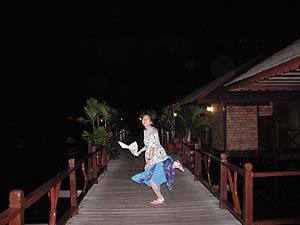 そのうち日は沈みあたりは真っ暗に。夜7:00頃、さてということでレストランへと向かいます。このコテージの難点は、ほぼ一番端っこ(端から2番目、Room No:S130)の部屋なのでとにかくレセプションやレストランまでが遠いということなのですが、まぁその分部屋の前を歩く人がほぼ誰もおらず静かでいいのかな。通路の板は結構ペコパコいうもんですからね。