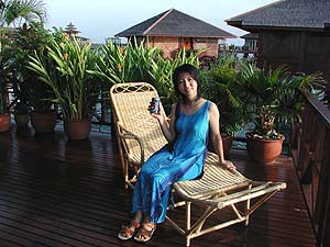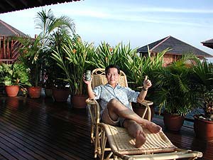 部屋に戻り、おしんこどんはジャグジー風呂を堪能し(ま、Takemaも多少ね)、その後はデッキチェアで夕方の太陽に照らされながらのんびり=リゾート暮らしの真骨頂!と相成ります。よっしゃぁ、こうでなくっちゃ!