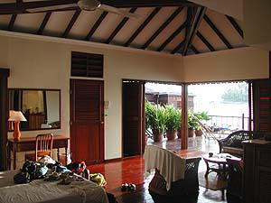 というわけでホテル付属のダイビングセンターへ。ここで借りたのがシュノーケルとフィン、そして「じぇったい沈まないために重要な」ライフジャケットの3点セットでした。いやぁ、こいつがあるとないとではTakemaの精神衛生上に大きな違いがあるってもの。セリンガン島ではこれがなかったから結構びくびくしながら泳いでたもんなぁ。