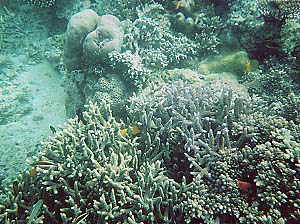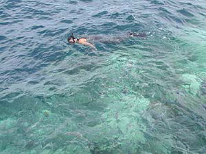 嗚呼、いっちばん綺麗だったこの場所で写真が全然撮れなかったとは!もう残念至極の極致というか、とにかく悔しかったぁ。実はこの旅行の出発前、「せっかくの機会だしデジカメ新調と合わせて水中撮影用のカバーも買おうか?」などと考えてもいたのですが予算の都合で断念したんです。ちなみに帰国後、知り合いの人(ダイバー)にこの話をしたところ、「何だ、言ってくれれば水中撮影用のデジカメ貸してあげたのに」と言われたひと言は脳天にぐさりときた記憶があります(笑)。