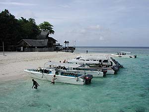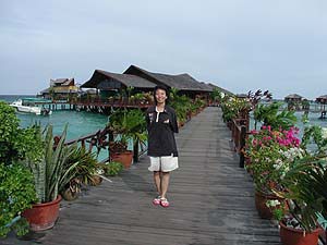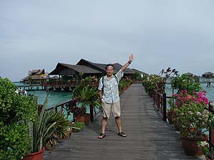 埠頭の先っぽはくつろぎスペースになっていて、海面を見るとそれこそたぁーくさんの魚たちが泳いでいるのが見えます。ところでシパダン島周辺に魚が多いのは「国境線画定のあーだこーだのために漁船が入れず、海が荒らされていないため」なんだそうです。なるほど、人為的理由で乱獲を免れていたわけですね。となれば日本でいけば竹島あたり、アジアでいけば南沙諸島あたりは案外「入れ食いエリア」なのでしょうか?いや、別に釣りにいこうとは思いませんけれどね(笑)。