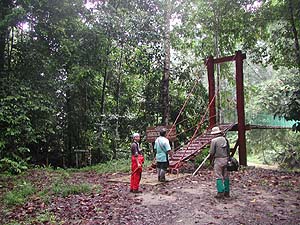 さて、午後は「ホーンビルトレイル」に行くというので結構期待しちゃいます。というのも、前回一番多くの動物を見られたのはこのトレール沿いだったのです。ベアキャットもオランウータンも至近距離だったし、今回も期待して良さそうな気がします。というわけでのんびりお昼ご飯。おっと、このタイミングでYoichiさん一行がダナンバレー到着!皆さんで「会食」となりました。