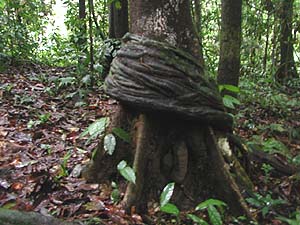 おいおい、そこまで気合いを入れて締め付けなくてもいいじゃない=絞め殺しの木