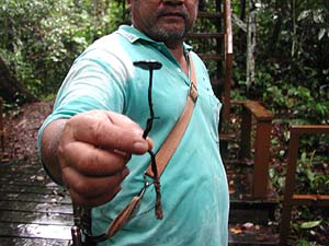 ようやく動物、しかもレアものを見つけられたロボさんもごきげんです。しかし、このウォークでの「収穫」はこのテングザルのみでした。トレールの終点であるキャノピーが近づいてくるのと同時に雨も本格化し始め、もうびしょびしょ。ほうほうの体でロッジへ戻ることとなったのでした。でもまぁ見られただけラッキーとしなきゃ。