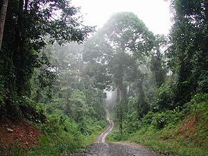 さて、ご飯の後は初歩きとなるトレールへ。雨もポツポツ落ちてきている中ではありますが、まぁこれはしょうがないかなとあきらめて歩き始めます。しかし湿気がすごい!Takemaのメガネは曇りまくってかなり悲惨な状況ですが、いまだコンタクトというものに縁がない以上しょうがないですね。しかし、やっぱり冬山登山と熱帯雨林にはコンタクトの方が絶対いいなと改めて実感。って、いっつもすぐ忘れちゃうんですけれどね(笑)。