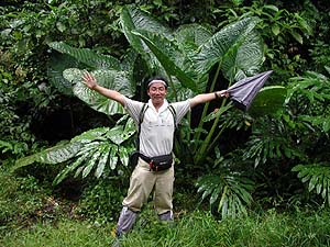 クワズイモ前にて記念写真。確か前回(2001年)にも似たような写真を撮った気が?