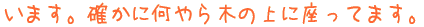 同じようにして木の上を見上げてみますが、何かがいるのかいないのかも全くわかりません。「ほらあそこ、あの木の梢のすぐ近く!」と言われても全然わからない。しかしよーく目をこらしてみてみると‥。