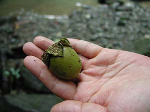 食事後、ロボさんいわく「ヒミツの場所」に案内するよとのこと。どうやらアマツバメの巣(珍味として珍重されるあれですな)のある洞窟ということですが、場所は他の人に教えないでということでここには書きません。でも、しっかり踏みわけ道も出来ていたしロボさんだけしか知らないとは思えないんだけれどなぁ(笑)。