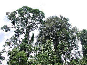 そのあとは来た道を戻り、スタッフ居住区を経由して戻ろうとすると‥居住区すぐ北側の大木に再びテナガザルがいるようなので、その木の下まで進んでみると‥あ、SAPAファミリーとYoichiさん一行が(笑)。なるほど、先ほどの場所からここまで進んだわけですね。というわけで再び観察のおじゃまをさせてもらいました。