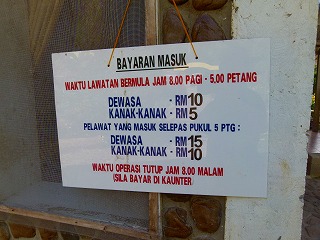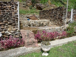 左上画像はわれわれの泊まった部屋前の通路。屋根の張り出しを長めにしてあるので、朝日の差し込みも少なめです(谷あいにあるので朝一番から日が差すわけではありません)。また雨の時でも洗濯物が直接雨にさらされるわけでもないようです(ま、おこぼれ的には濡れますが)。ここはもちろん温浴エリアを含め、建物&敷地内のほとんどの場所は履き物禁止になっています。清掃がきちんとなされていて気持ちいいです。 なお、建物へのエントランス階段部分は玉石を埋め込んだ足ツボマッサージ区間になっておりまして(左上画像マウスオン=ちょっとわかりにくいですが)、上りはともかく下りは結構刺激強し。おしんこどんは「身体のどこかが悪いと痛いっていうよ」とツッコンできますが、下りは体重かかるからしょうがないって(笑)。 ちなみにこちらのお宿では日帰り入浴も可能です。8-17時は大人RM10(約300円)、17時以降はRM15ということでまぁ日本の共同浴場相場ではありますが、日本からの観光客がラワスから往復4-5時間をかけて「日帰り入浴にやってくる」ことはまず考えられないですけれどね(笑)。 |