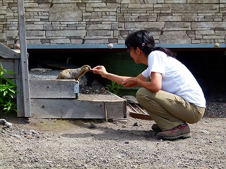 ちなみにターニャさんによると「今日はあまり食いつきがよくないです」だとか。「ここの地リスは普段からえさをもらってますから、普通のパンとかだと食べ飽きているのかもしれません」とのことで、ハイそうなんです。実は持参したパンは昨日の夕食に出されたものなんですでに固かったし(大笑)。