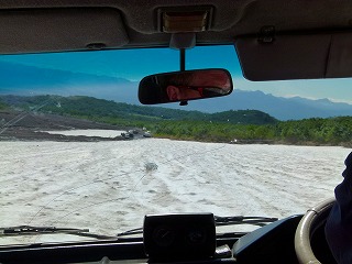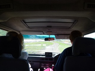 しかしウラジミールさんの適確なハンドルさばきとアクセルワークとで無事難所を突破。このあとは例の河床ラフロードを走り抜け、舗装道路まで戻ったところで脇の広場に入ったところで停車。