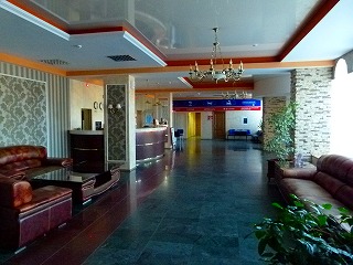 三つ星マーク付きのアバチャホテルロビーはこんな感じ。決して新しくはないのですが、床の拭き掃除などもしばしば行われていまして好感なんですよ。しかし古さが否めないのはエレベーターでありまして(右上画像マウスオン)、ターニャさんが乗りたがらないのもわかるような?