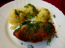 今日のメインディッシュは鮭のフライとマッシュポテト。うーむやってくれますなぁ、今日も鮭なんですかそうですか(そろそろ食傷気味)。